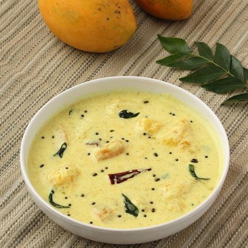 This savory dish consists of potatoes, raw bananas, carrots, drumsticks, raw mango, and beans. This is a traditional dish served on top of Kerala rice that will make you want to dig right away.