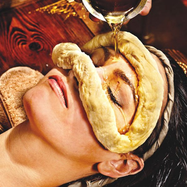 A paste made of various herbs with buttermilk is applied all over the head. The healing properties of the herbs calm down the nervous system and rejuvenate you. This treatment is indicated for insomnia, headache, hair loss and graying, dandruff, stress relief and certain mental ailments
