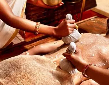 Warm bundles of medicinal leaves are prepared in neem or castor oil and are used to massage the body. The treatment is very effective in relief of aches and pains, swelling and sports injurie