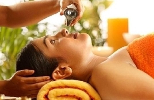 Nasyam involves the massage of the face, shoulders and chest with herbal oil after which herbal extracts/oil is inhaled. The area around the nose, chest, palms and feet are then massaged vigorously. It is useful in the ayurvedic treatment of allergies, headaches, migraine, sinusitis and other nasal infections.