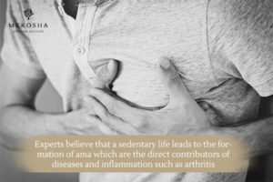 Experts believe that a sedentary life leads to the formation of ama which are the direct contributors of diseases and inflammation such as arthritis. The symptoms of amavata include body ache, tastelessness, excessive thirst, lethargy, heaviness in the body, and feverishness. Early morning stiffness in the joints and pain in the joint, which is referred to in the classical text is like being stung by a scorpion, is the extent to which the pain in amavata. Part of the complaint system includes constipation, indigestion, the fullness of the abdomen, and lack of sleep.