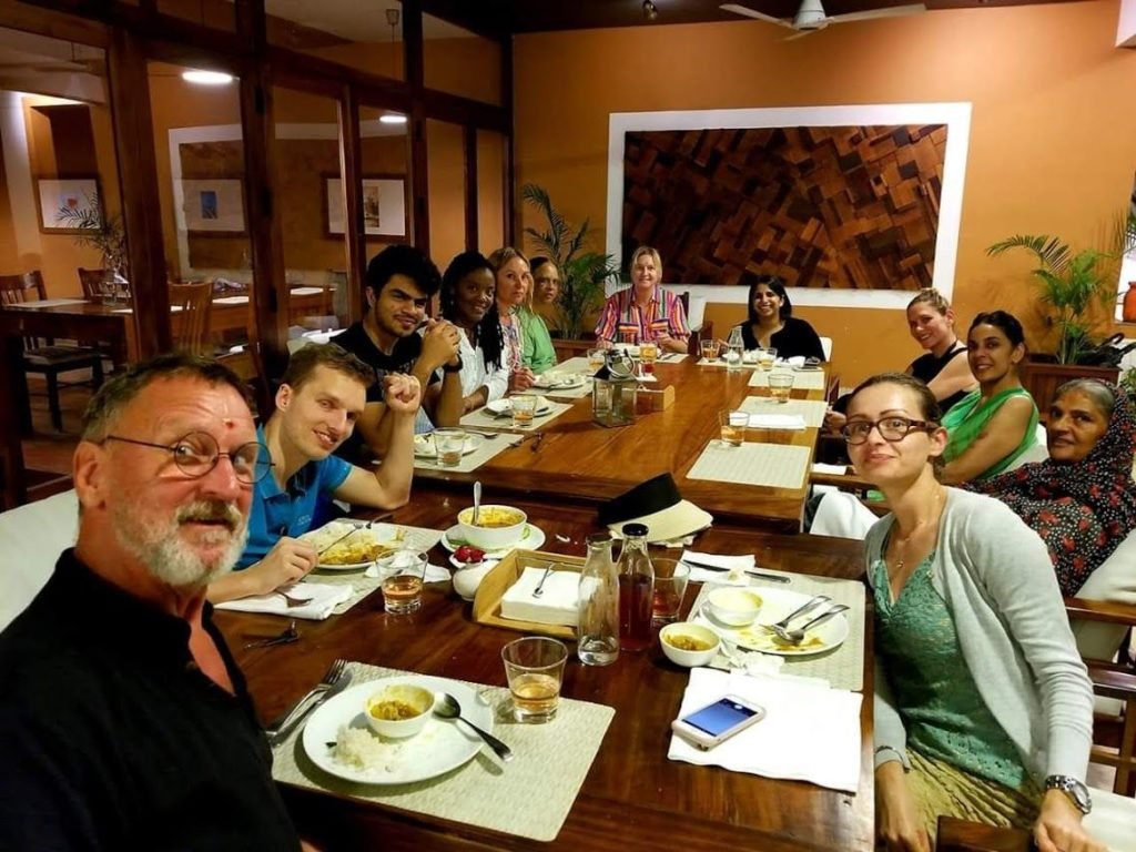 An inviting setting, vast wooden tables, a great meal and a chance to meet people from all over the world makes for a convivial atmosphere.